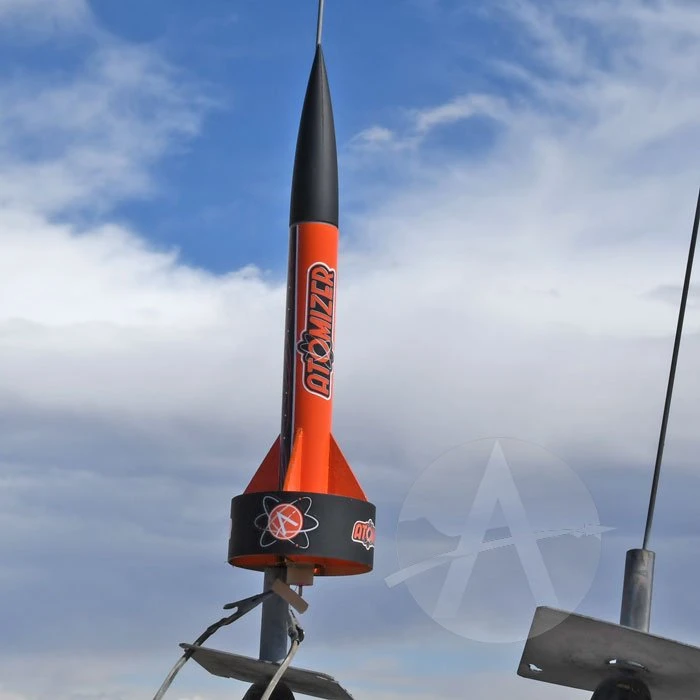 With its stove-pipe ring tail, the Atomizer is sure to be different from all the other rockets at your next launch. It flies straighter too! The rocket is a joy to assemble, and flies to about 400 feet on a C-size rocket motor.